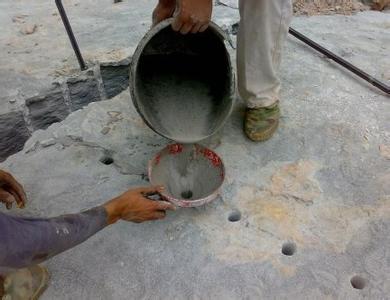 ? 根據(jù)每孔膨脹劑用量多少,加水?dāng)嚦删哂辛鲃?dòng)性的稠漿往孔內(nèi)灌滿為止。